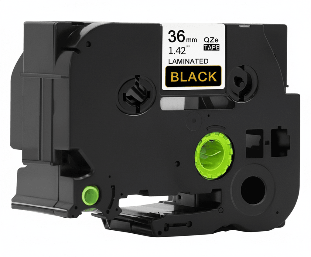 Brother TZE364 P-Touch bånd guld på sort tape 36mm x 8m kompatibelLængde: 8 meterBredde: 36 mmFarve: Guld Tekst på Sort Tape