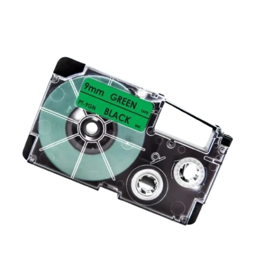 Casio XR-9GN bånd sort på grøn tekst 9mm x 8m kompatibel